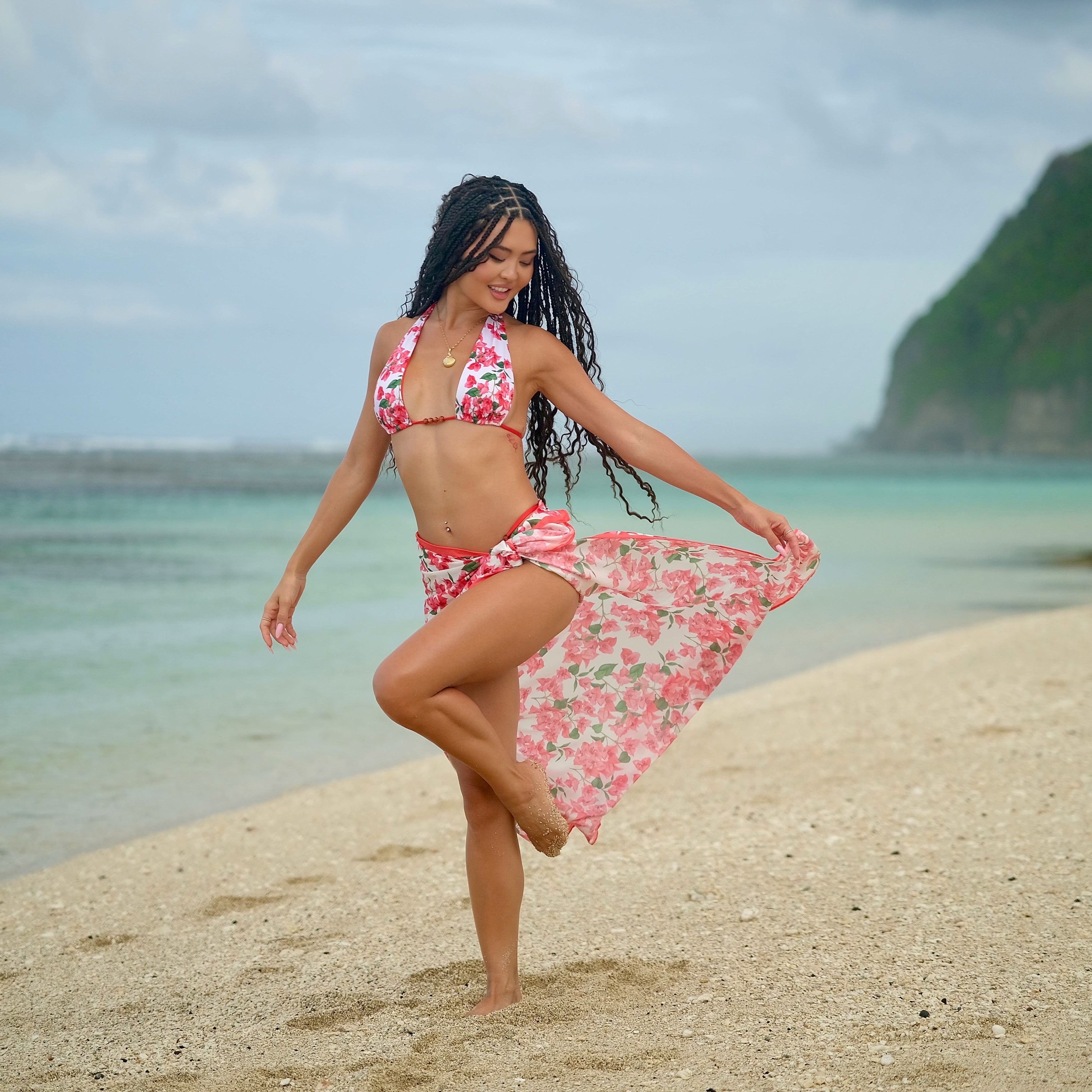 This limited-edition collection is inspired by the vibrant bougainvillea flowers that cascade in rich hues across Bali’s landscapes, and the sparkling turquoise waters that stretch endlessly into the horizon. A reversible collection that captures the very essence of island beauty. Each piece is carefully crafted with intricate bead detailing, like little treasures from the island, reflecting the warmth of the sun and the tranquil waves. Dive into the serenity of Bali with a collection that celebrates nature, beauty, and the art of living beautifully by the sea.