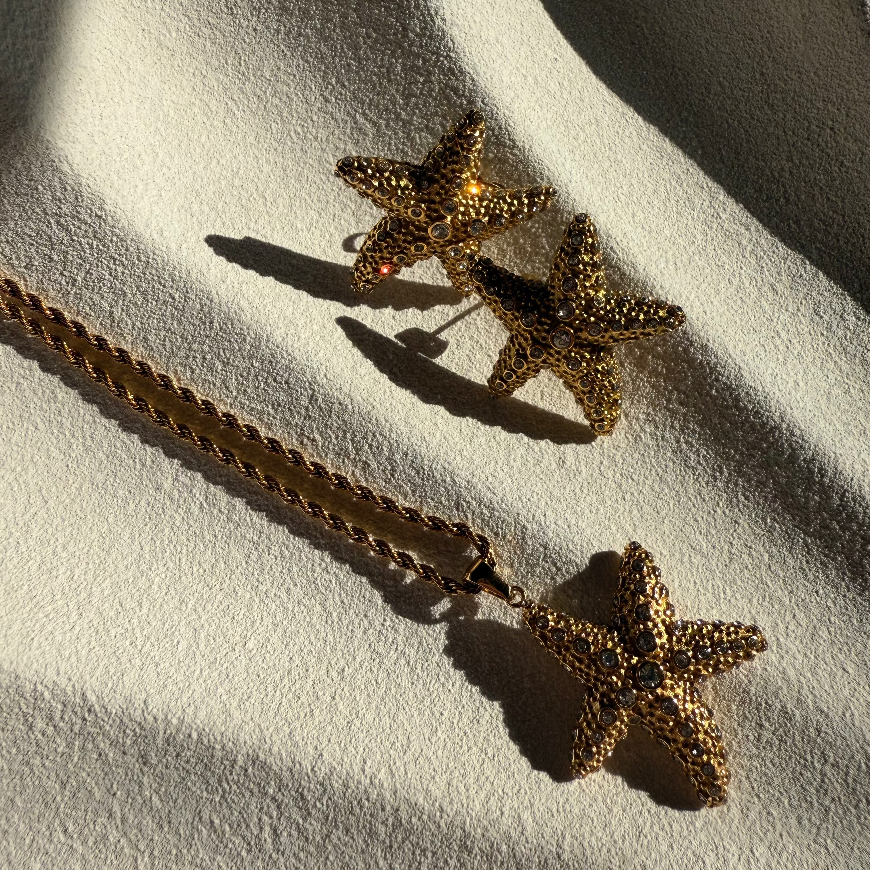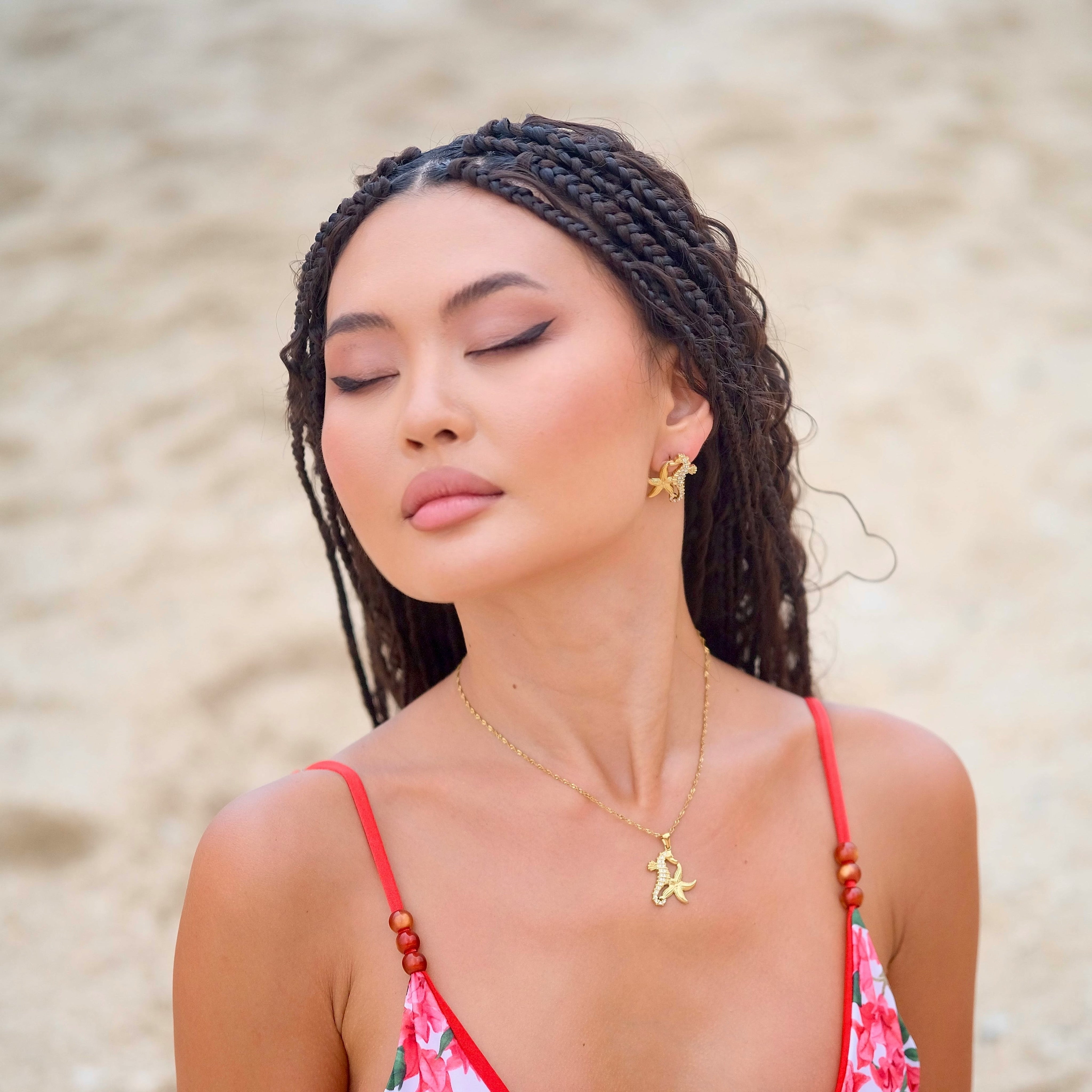 Welcome to The Island – a dreamy, sun-drenched jewellery collection, made for the women who live for golden hours, salty skin, and tropical heat. Dipped in luxe 18k gold plating, this collection features statement earrings, necklaces and playful oceanic charms, each piece telling a story of island escape, a love letter to summer. Layer them, mix them, or let one steal the spotlight. The Island is made to turn heads and spark stories.